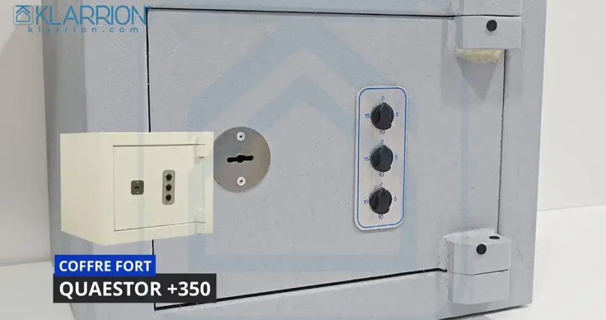 🔑 Présentation du coffre-fort Quaestor+ : Découvrez ses caractéristiques techniques, notamment sa serrure à 7 gorges, sa clé double pannetons et sa combinaison mécanique à 3 compteurs à 20 dents manœuvrables par des boutons.