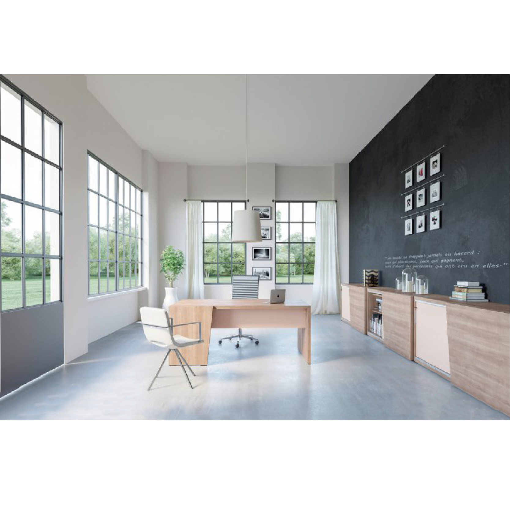 Brava est un ensemble de direction chaleureux dont le style souligne un tempérament dynamique et entreprenant. Brava apporte une touche architecturale à votre ensemble de direction avec un jeu parfait de matières. Particulièrement adapté pour les professions libérales et les managers Brava constitue le bon compromis entre budget, qualité et design.