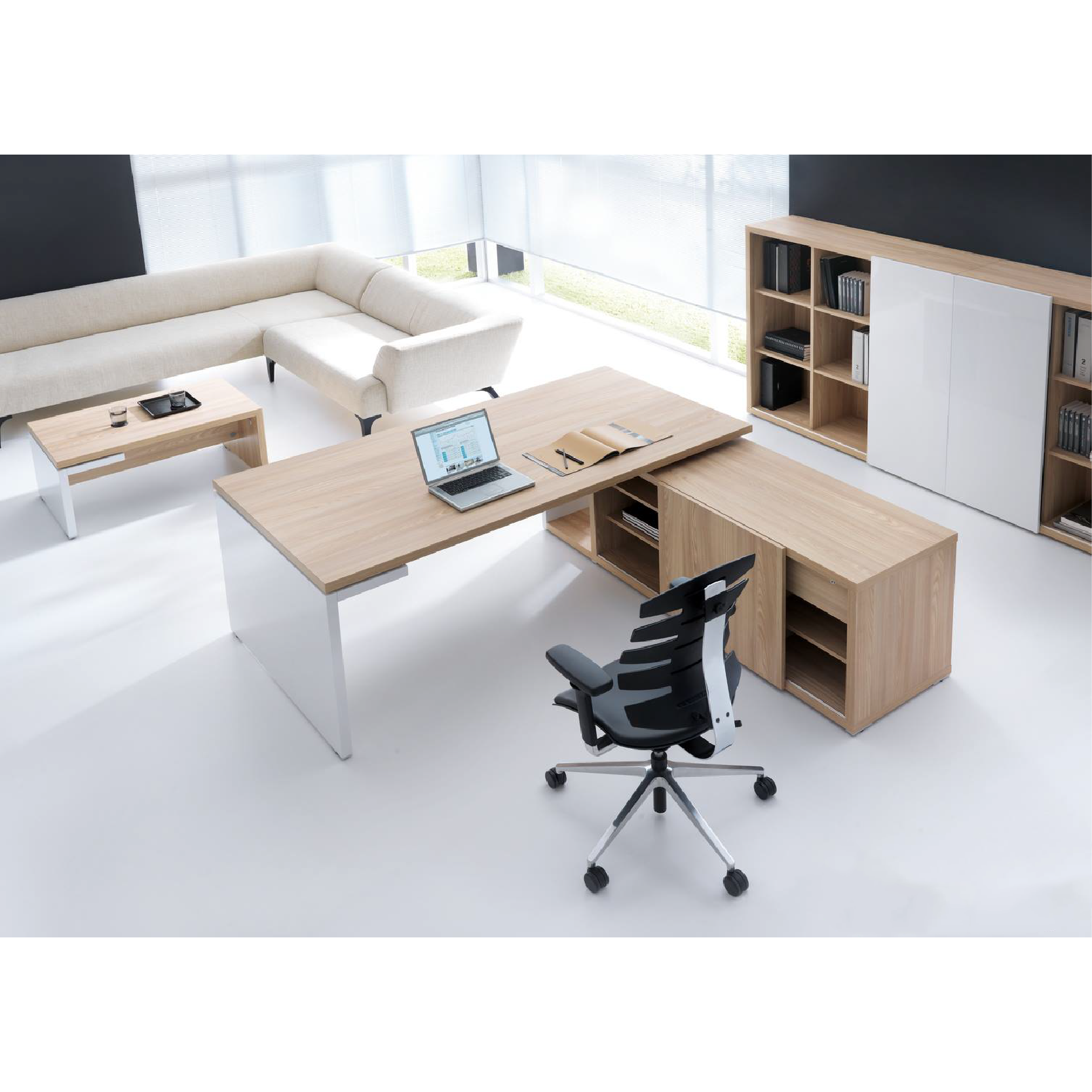 Mito est un bureau avec retour, conception moderne avec une tendance de deux couleurs