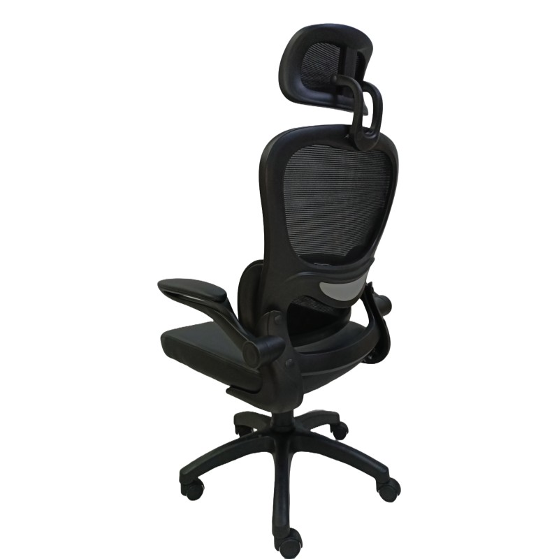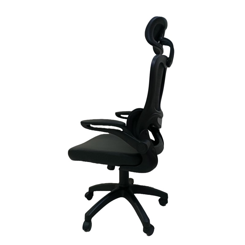 MOLO un fauteuil de bureau ergonomique en tissu noir avec tous les réglages nécessaires pour une bonne position au bureau : tétière et accoudoirs réglable, basculant décentré de l’assise et support lombaire .