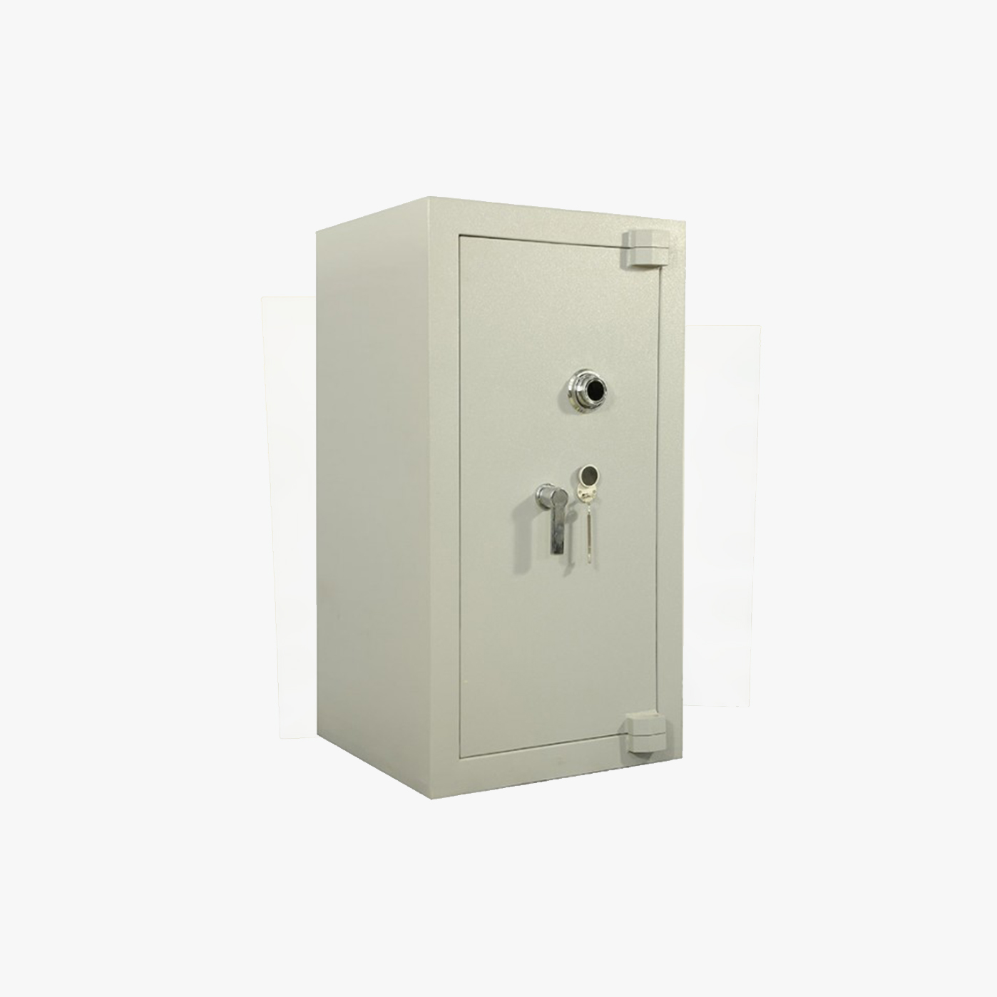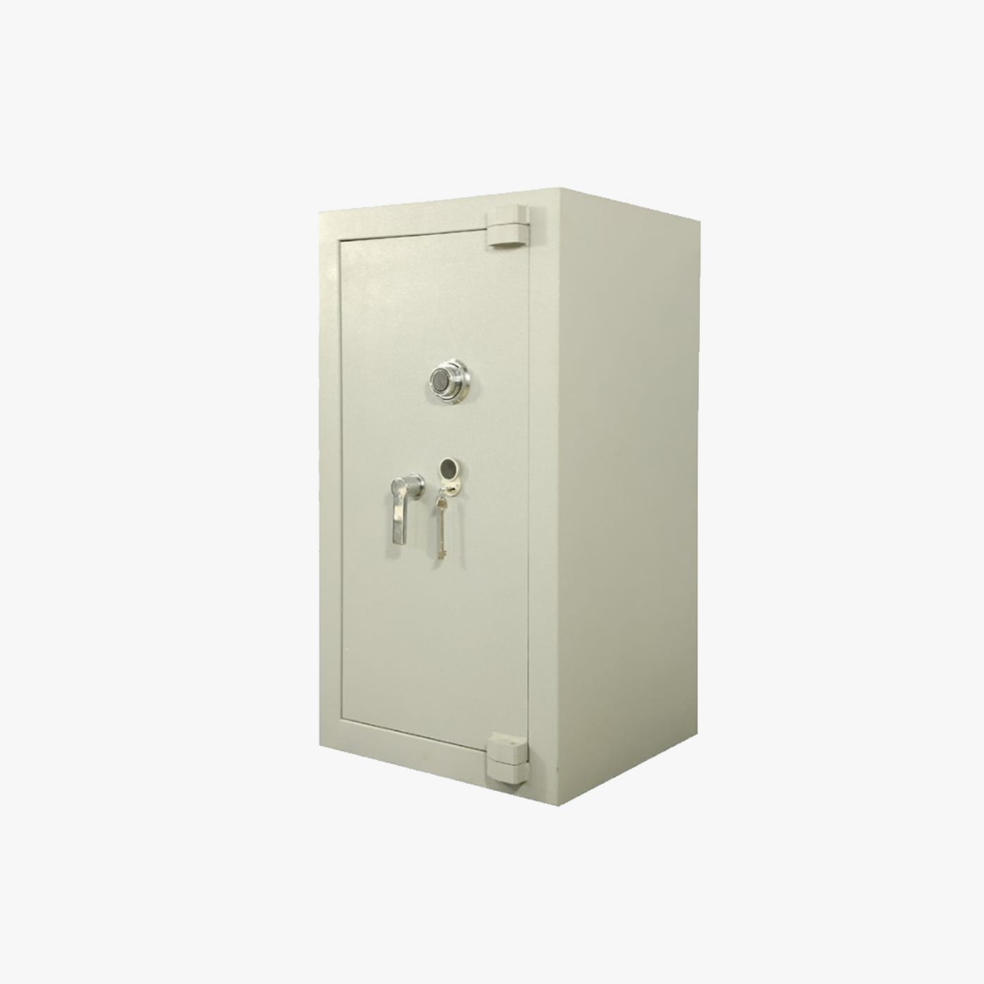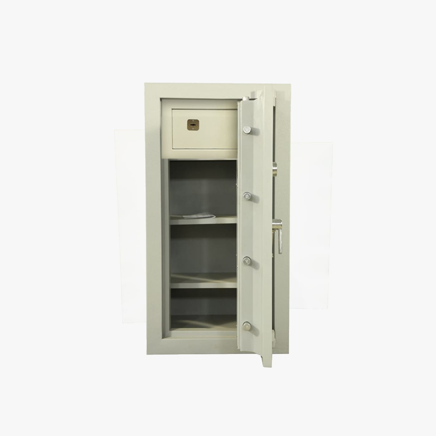 Une poignée ergonomique permet de commander aisément le maniement des pênes et le mouvement de la porte. Le mouvement de cette poignée est condamné par une serrure à clé de haute sécurité à double pannetons (certifiée VDS classe A) et d’une serrure à combinaison 3 disques (1 million de combinaisons). En outre, un délateur se déclenche immédiatement en cas d’attaque thermique et re-bloque la serrure.