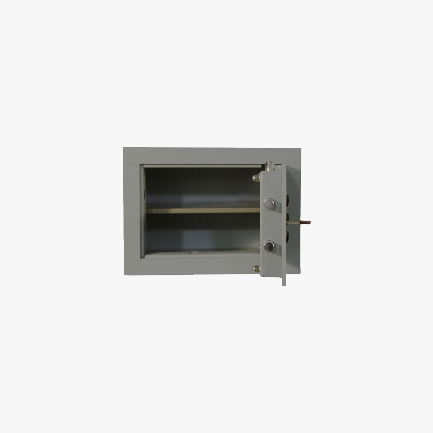 Coffre fort CLYPEUM 11 – Corps en forte tôle d’acier à noyer et sceller dans la maçonnerie. Porte en tôle d’acier de 8mm d’épaisseur montée sur pivots intérieurs avec dispositif d’accrochage du côté des pivots.