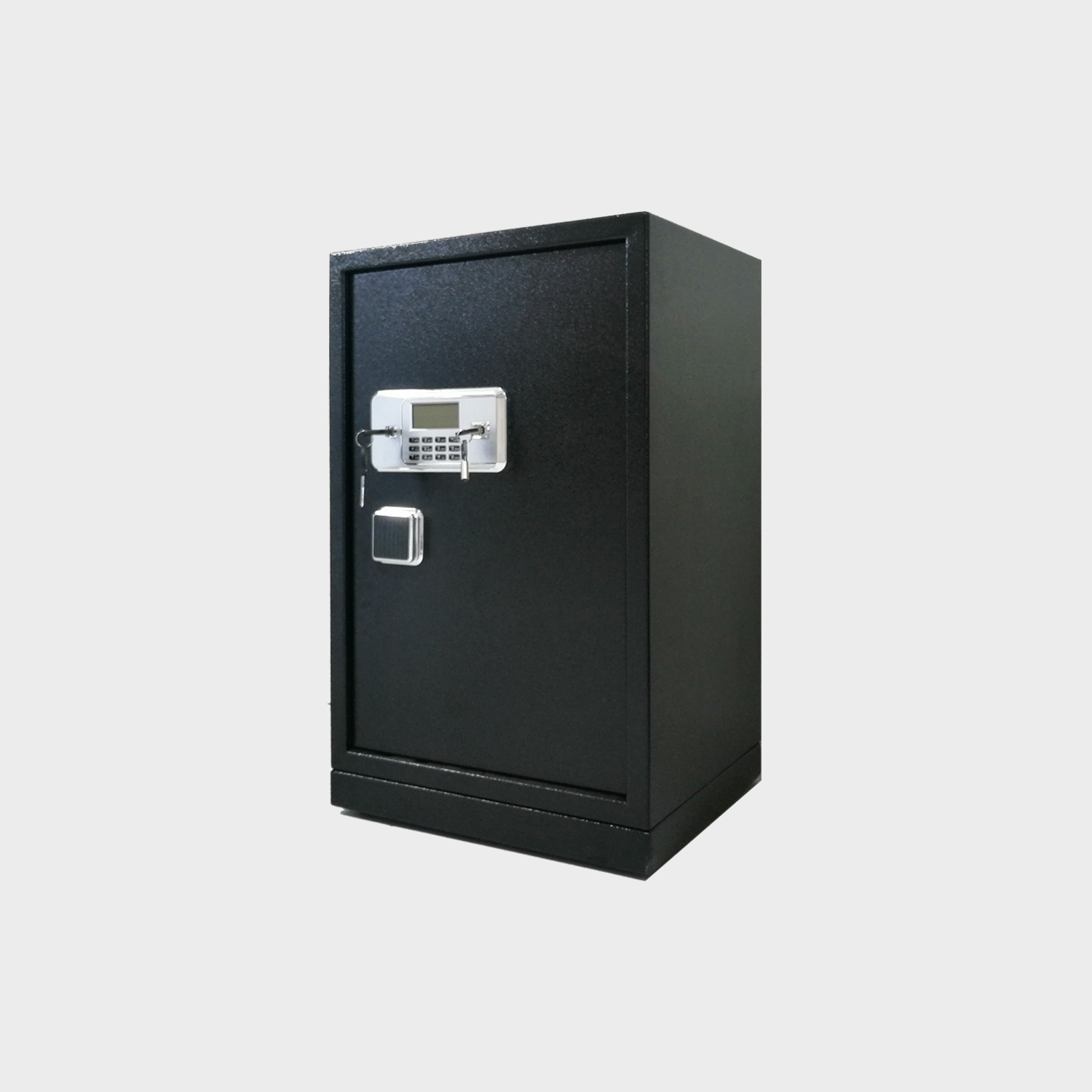 Le Coffre fort Quaestor 5 + à poser électronique est doté d’un corps en tôle acier d’une épaisseur 20/10.Porte en forte tôle épaisseur 100/10, Pivotante sur des pivots intérieurs permettant une ouverture à 90°.