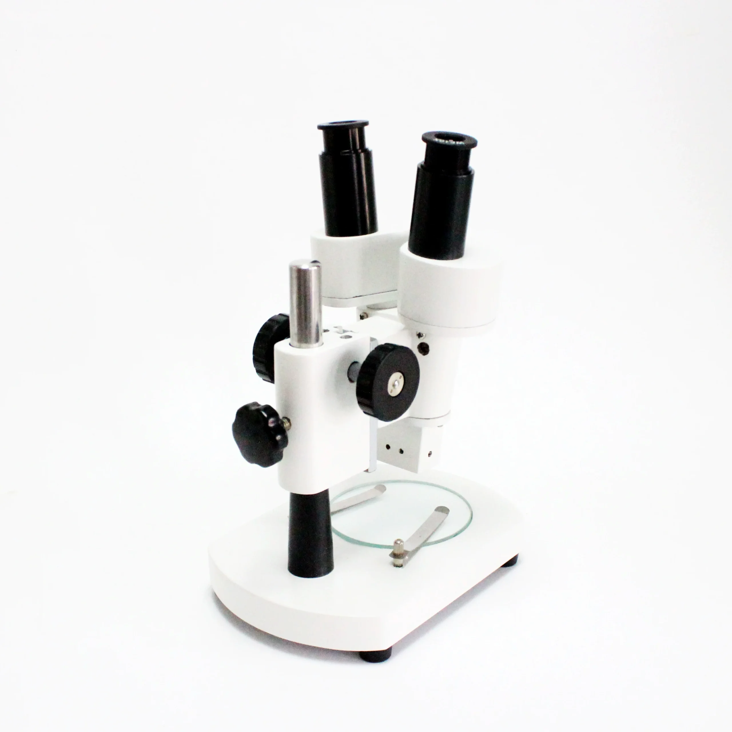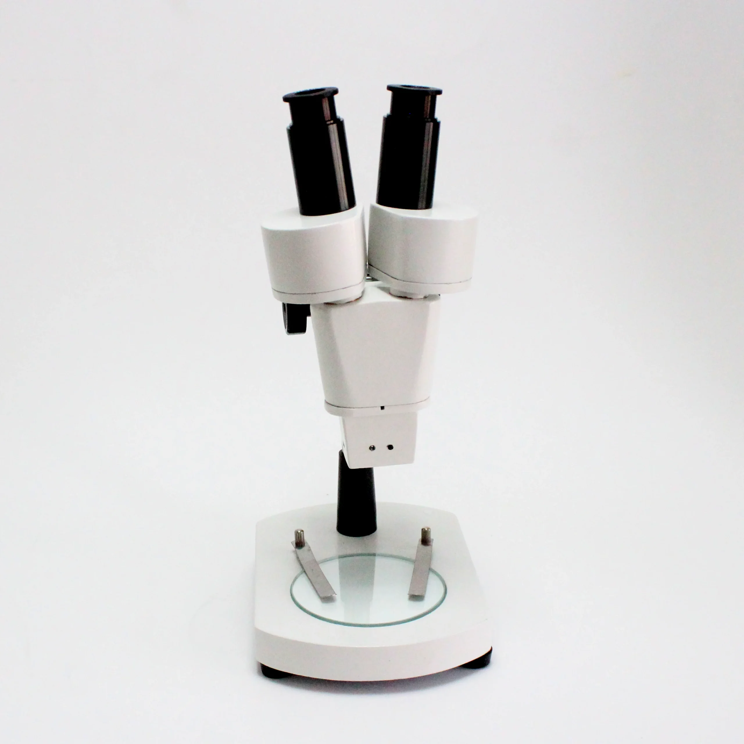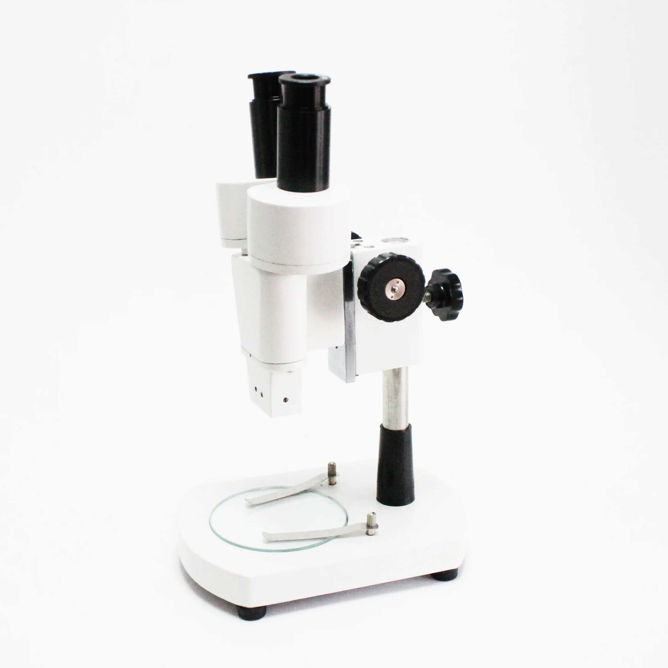 - Tête binoculaire stéréo droite avec réglage interpupillaire et objectifs achromatiques fixes 2x, offre une distance de travail de 80 mm, avec un champ de vision de 5,5 mm.
