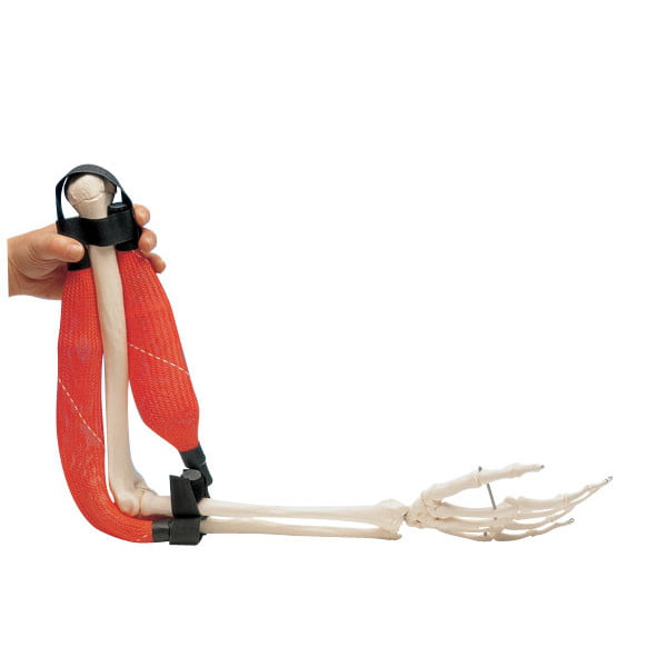 Ce modèle analogique représente de façon dynamique le fonctionnement de deux muscles antagonistes. Le modèle s’adapte sur le squelette humain présent dans votre classe (taille réelle) au niveau du bras. Il est donc possible de montrer l’effet de la contraction musculaire sur le déplacement des membres antérieurs ou postérieurs.