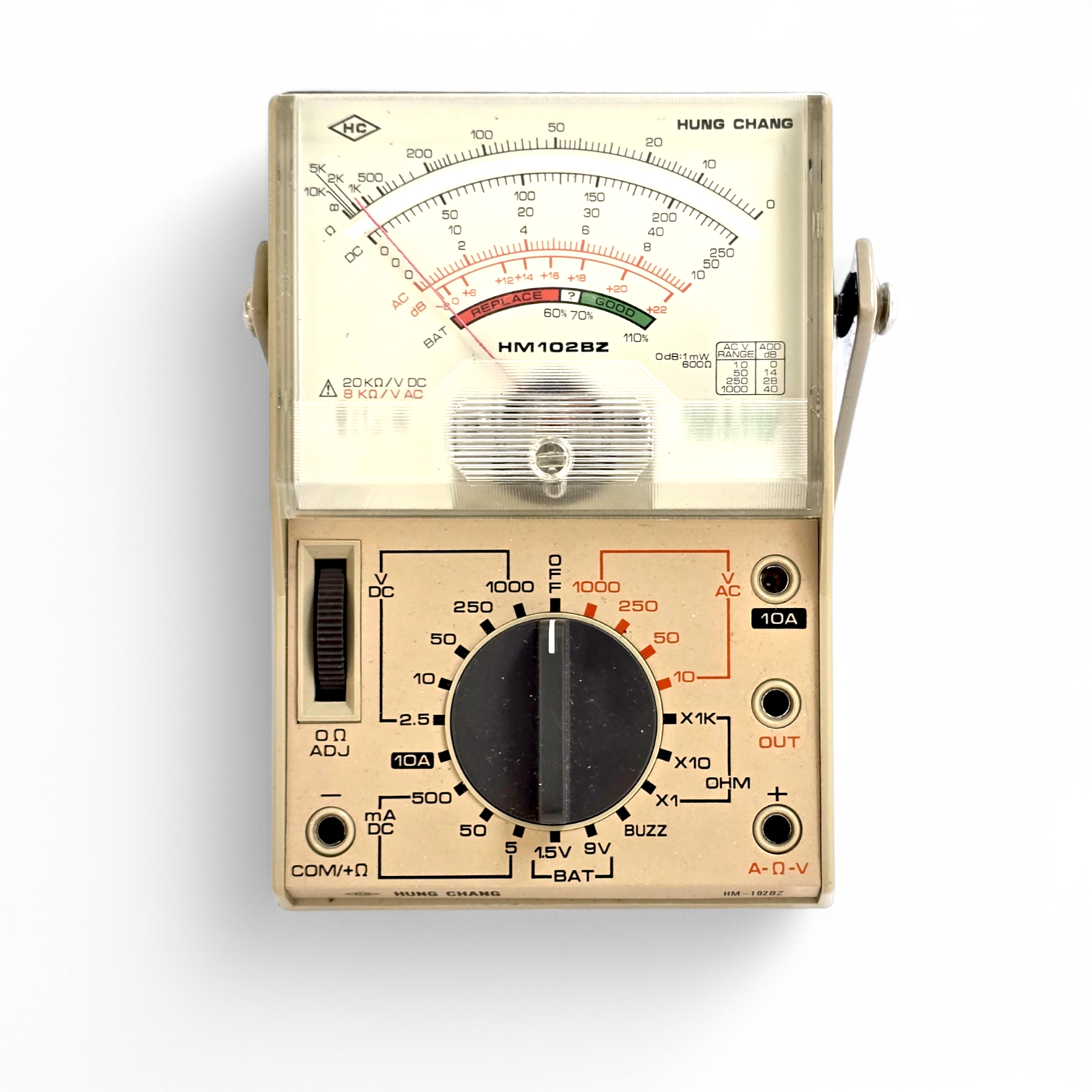 Le multimètre analogique Hung Chang HM102BZ est un appareil de mesure électrique polyvalent conçu pour mesurer la tension (AC et DC), le courant (DC), la résistance et la continuité. Il est idéal pour les applications de dépannage électronique, les tests de circuits et les projets éducatifs.
