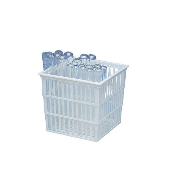 En polypropylène, autoclavable. Ce panier réduit les problèmes de casse et de corrosion.