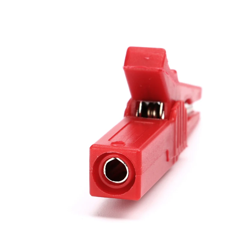 La Pince Crocodile protégée 55 mm (taille moyenne) est conçue pour des applications de test et de connexion fiables jusqu’à 20 ampères et 2000 volts. Elle dispose d’une prise jack 4 mm à l’arrière, ce qui signifie qu’elle ne peut pas être soudée directement ; pour le câblage, l’utilisation d’une fiche banane est indispensable.