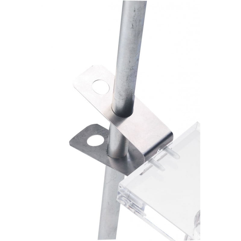 Fixation par lame de ressort en acier-ressort.