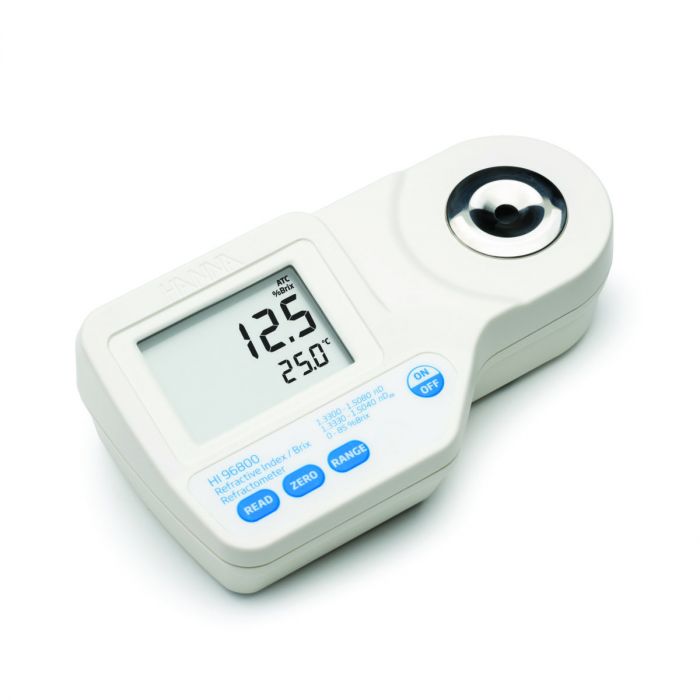 Le nouveau réfractomètre numérique HI96800 de Hanna Instruments combine forme et fonction en une seule unité compacte. Doté d’un temps de réponse de 1,5 seconde, le HI96800 mesure l’indice de réfraction de 1,3330 à 1,5040 avec compensation de température (nD20) et de 1,3300 à 1,5080 sans compensation de température (nD). Pour plus de polyvalence, le réfractomètre convertit également l’indice de réfraction en % Brix (0-85 %). L’étalonnage à un bouton rend la configuration rapide et facile.