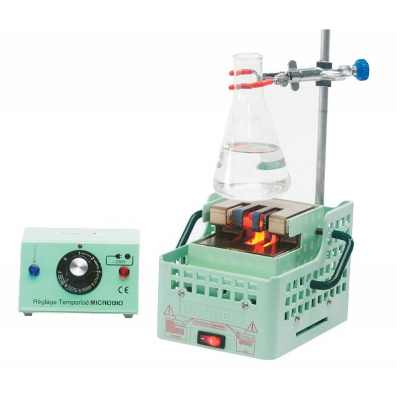 Le brûleur électrique est un dispositif de chauffage qui peut remplacer le brûleur Bunsen pour réchauffer des tubes à essai et des conteneurs, et pour réaliser des expériences chimiques différentes qui nécessitent l’utilisation d’une flamme.