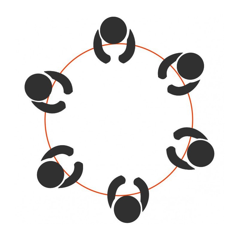 Table Ronde multiplace pour les établissements maternels. La table est constituée d’un plateau en bois MDF mélaminé, fixé sur une structure métallique revêtue en époxy basée sur 4 pieds.