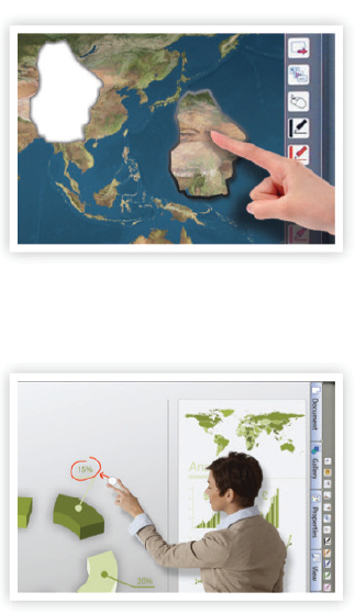 Les fonctionnalités tactiles et les capacités multi-touch des StarBoard FX-89WE2 leur confèrent une utilisation complètement intuitive pour tous. La largeur de ces tableaux offre un espace de travail supplémentaire et contribue à améliorer le travail de groupe.