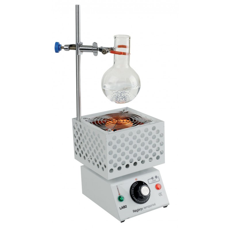 – Grille spécialement conçue pour permettre un chauffage optimal quelque soit le récipient à chauffer (ballon, bécher, erlen ou tube à essais)